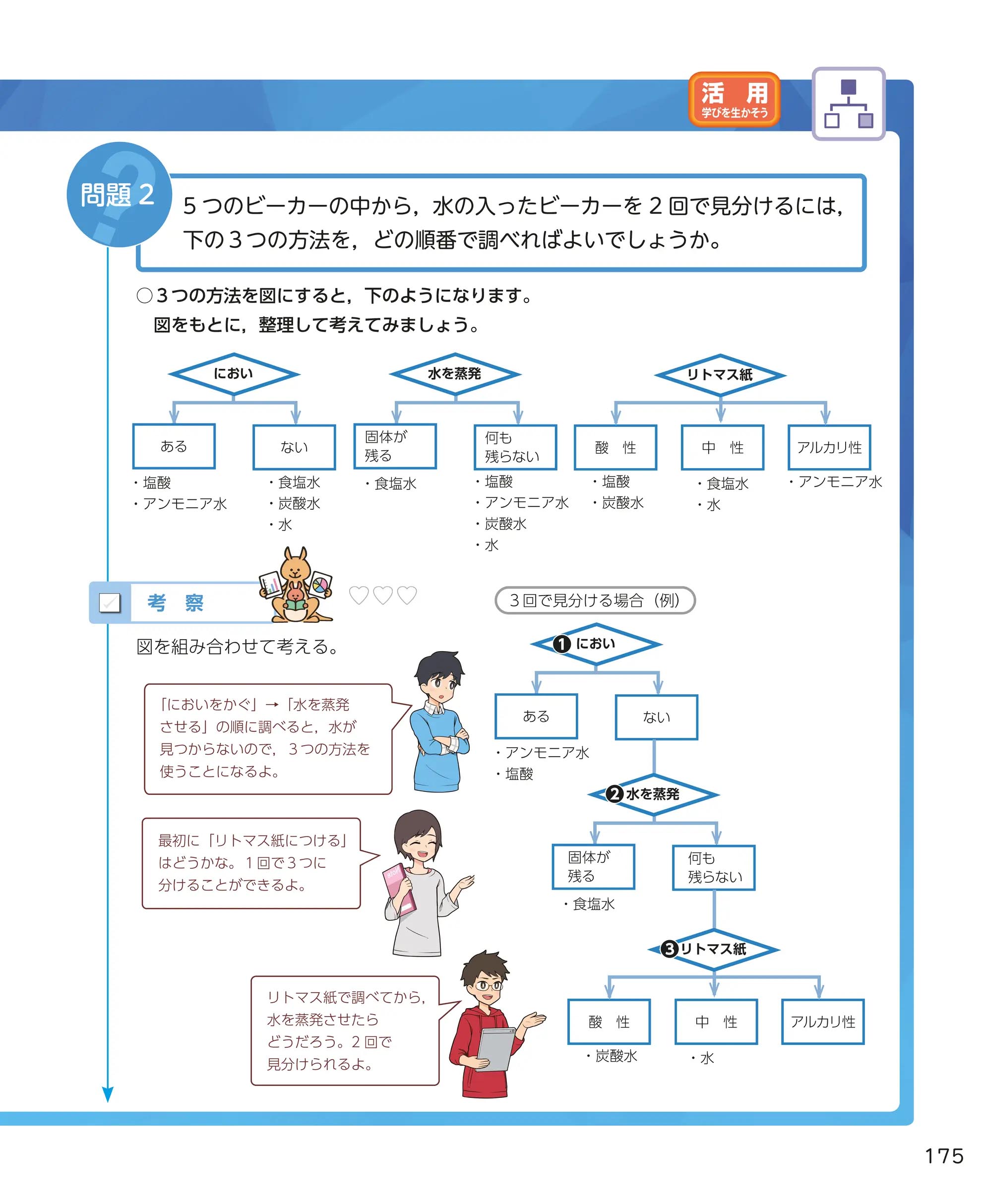 その他にも、随所にものの分類や、水溶液の仲間わけなどの活動で、プログラミング的思考を育む場面を設けております。